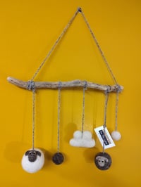 A needle felted hanging, perfect for a babies room, or for anyone who loves sheep!